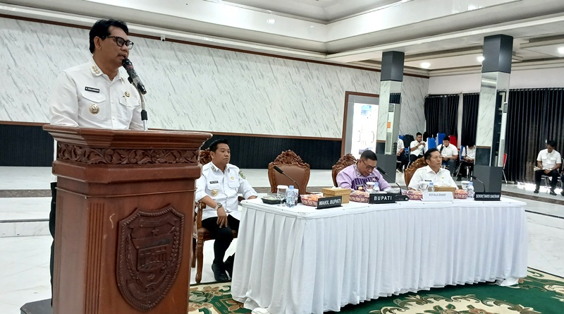 SAMPAIKAN SAMBUTAN-Bupati Barito Utara H Shalahuddin saat menyampaikan sambutan pada acara Audiensi dan Sinergi P4GN yang digelar di Gedung Balai Antang Muara Teweh, Rabu (11/2/2026).(WB:ist)