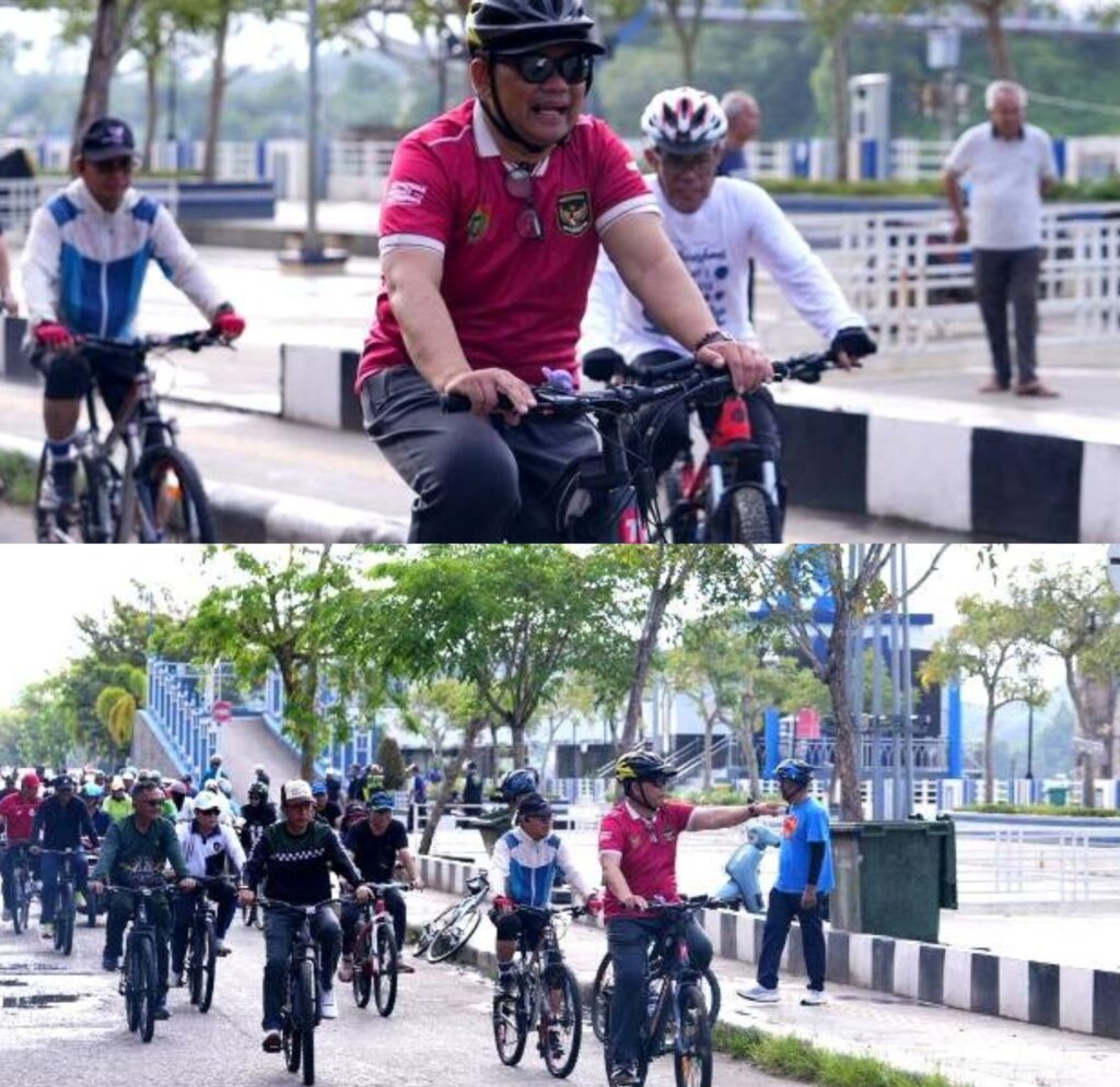 GOWES BERSAMA BUPATI-Bupati Barito Utara, H. Shalahuddin didampingi Sekda, Kepala OPD lingkup Pemkab Barut serta masyarakat melaksanakan kegiatan gowes bersama pada pagi Minggu (19/4/2026).(WB:ist)