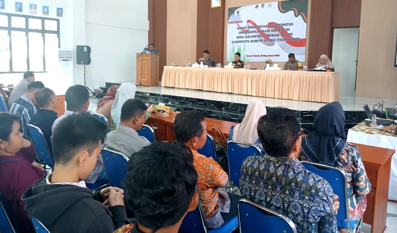 RAKOR PERCEPATAN OPERASIONAL -Dinas Nakertranskop UKM Kabupaten Barito Utara melaksanakan rakor Percepatan Operasionalisasi Koperasi Desa Kelurahan Merah Putih Barito Utara Tahun 2025, yang dilaksanakan di Aula SMPN 1 Muara Teweh, Kamis (27/11/2025).(wartabarito:ist)