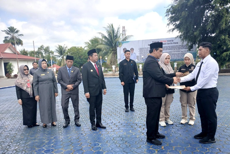 WARTABARITO.ID, Muara Teweh – Sebanyak 143 Pegawai Pemerintah dengan Perjanjian Kerja (PPPK) resmi menerima Surat Keputusan (SK) pengangkatan tahap II dari Pemerintah Kabupaten Barito Utara. Penyerahan SK tersebut dilakukan langsung oleh Bupati Barito Utara, H. Shalahuddin, S.T., M.T., di halaman Kantor Bupati Barito Utara, Kamis (16/10/2025).