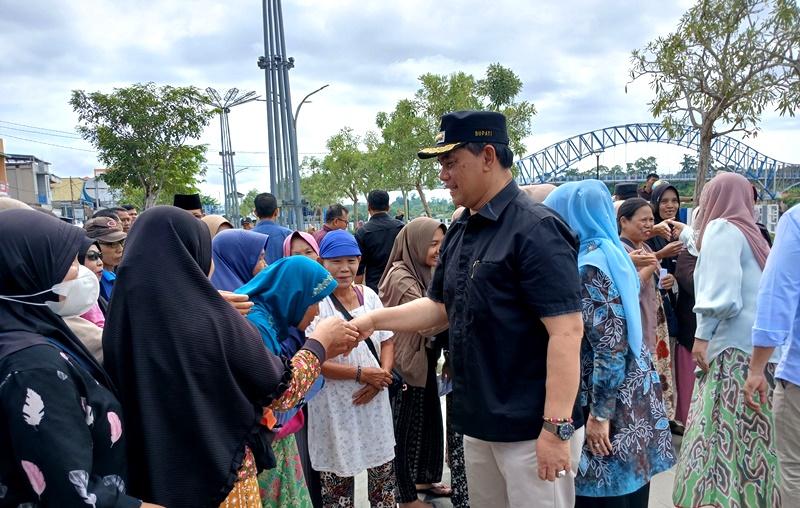 WARTABARITO.ID, MUARA TEWEH – Bupati Barito Utara H. Shalahuddin meninjau langsung pelaksanaan operasi pasar murah sekaligus menyalurkan bantuan paket sembako gratis kepada masyarakat di sejumlah titik wilayah Kabupaten Barito Utara, Sabtu (14/3/2026).