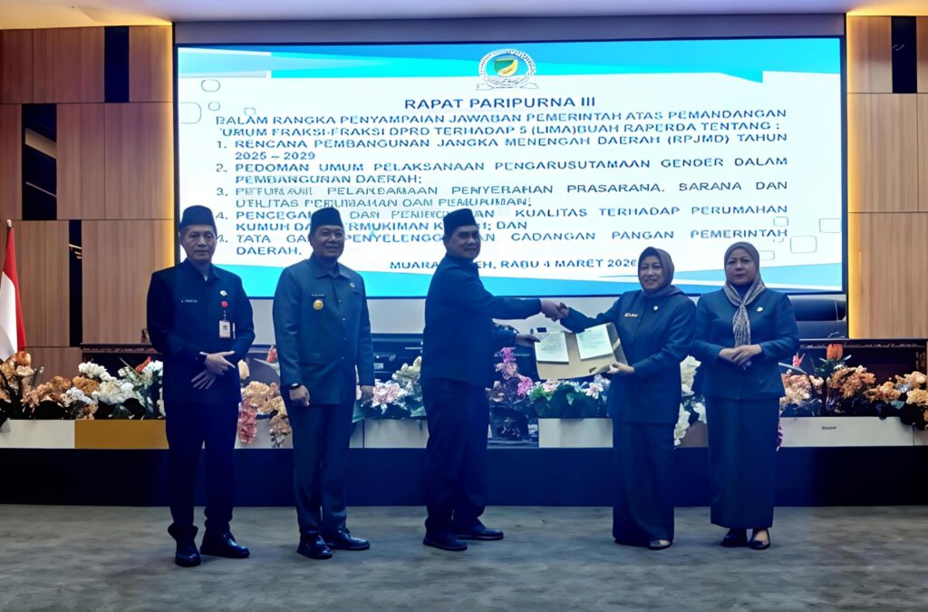 Lima Raperda yang menjadi objek pembahasan meliputi RPJMD 2025–2029, pedoman pengarusutamaan gender, penyerahan prasarana perumahan, penanganan permukiman kumuh, serta tata kelola cadangan pangan daerah.