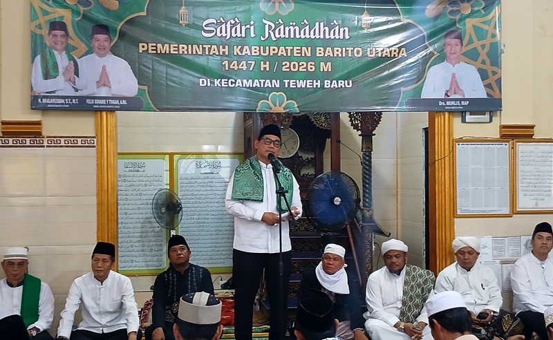 WARTABARITO.ID, Muara Teweh – Pemerintah Kabupaten Barito Utara mengakhiri rangkaian Safari Ramadan tingkat kecamatan dengan menggelar buka puasa bersama di Masjid Babusallam, Kelurahan Jambu, Kecamatan Teweh Baru, Jumat (13/3/2026). Kegiatan ini menjadi penanda komitmen pemerintah dalam mendekatkan diri kepada masyarakat sekaligus memperkuat tali silaturahmi di bulan penuh berkah.