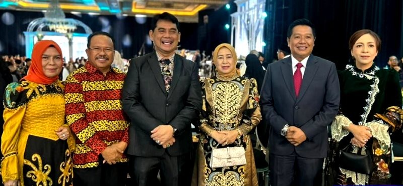 HADIRI RESEPSI PERNIKAHAN-Bupati H Shalahuddin didampingi istri dan Wakil Bupati Felix Sonadie Y Tingan di dampingi istri, menghadiri resepsi pernikahan megah putra Gubernur Kalteng H Agustiar Sabran, di gedung Kalawa Convention Hall, Palangka Raya pada Minggu (26/10/2025).(wartabarito:ist)