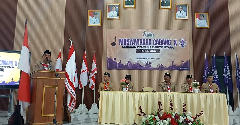 WARTABARIT.ID, Muara Teweh – Bupati Kabupaten Barito Utara H. Shalahuddin secara resmi membuka Musyawarah Cabang (Muscab) ke-10 Gerakan Pramuka Kwartir Cabang (Kwarcab) Barito Utara Tahun 2026 yang digelar di Aula SMPN 1 Muara Teweh, Sabtu (7/3/2026).