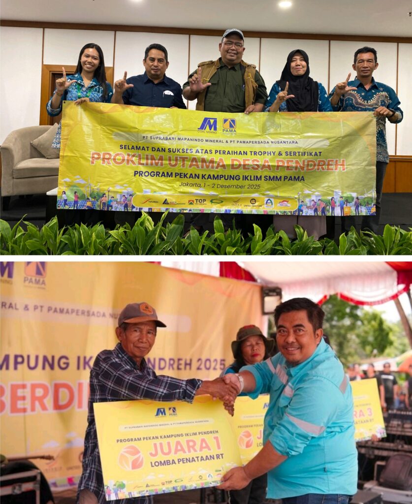WARTABARITO.ID, Muara Teweh – Upaya kolaboratif antara PT Suparabari Mapanindo Mineral (SMM) dan Dinas Lingkungan Hidup (DLH) Kabupaten Barito Utara membuahkan hasil membanggakan. Desa Pendreh resmi ditetapkan sebagai salah satu dari 50 desa penerima Trophy dan Sertifikat Program Kampung Iklim (ProKlim) Utama 2025 oleh Kementerian Lingkungan Hidup dan Kehutanan (KLHK). Penghargaan tersebut disampaikan pada penganugerahan ProKlim di Hotel Grand Sahid Jaya, Jakarta, 19 November 2025.