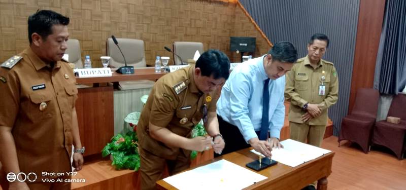 TEKEN KERJA SAMA-Bupati H Shalahuddin dan Kejari menandatangani kesepakatan bersama yang dilaksanakan di Aula A Setda, Selasa (11/11/2025).(wartabarito:ist)