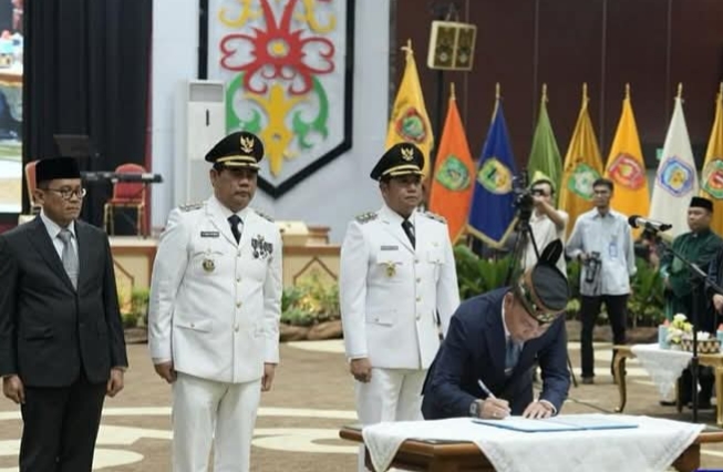 WARTABARITO.ID, Palangkaraya – Gubernur Kalimantan Tengah (Kalteng), Agustiar Sabran, melantik Shalahuddin dan Felix Sonadie Yusia Tingan sebagai Bupati dan Wakil Bupati Barito Utara periode 2025–2030, di Palangkaraya, Jumat (10/10/2025).