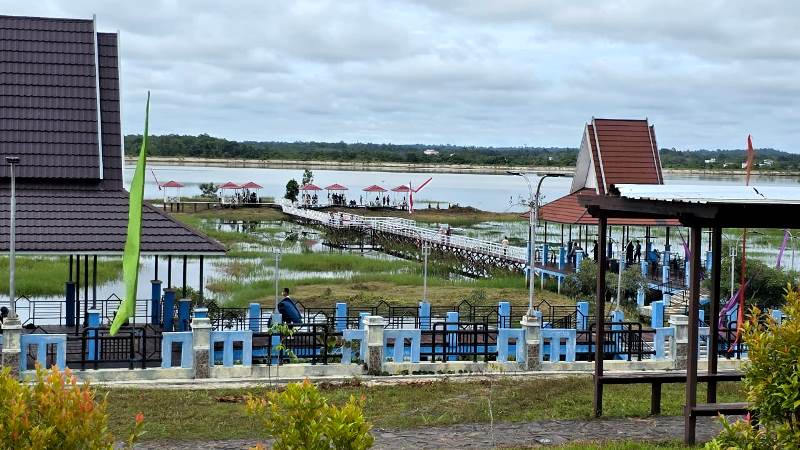 NIKMATI OBJEK WISATA DAM TRAHEAN-Sejumlah kafilah MTQH ke-33 tingkat Provinsi Kalteng yang datang dari berbagai kabupaten dan kota memanfaatkan waktu untuk berkunjung ke sejumlah objek wisata unggulan di Kabupaten Barito Utara, Jumat (21/11/2025).(wartqbarito:Dok Disbudparpora Barut)