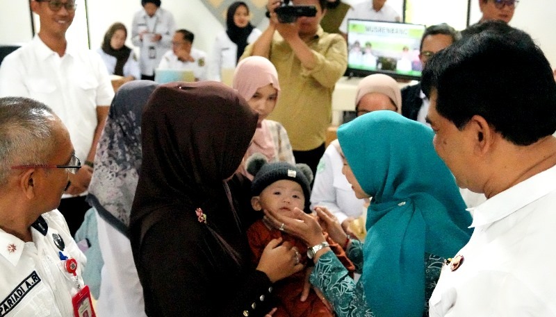 PEMBERIAN VITAMIN-Ketua TP PKK Barito Utara Hj Maya Savitri didampingi Bupati H Shalahuddin memberikan vitamin A kepada balita pada acara Musrenbang RKPD di aula Kecamatan lahei, Rabu (4/2/2026).(WB: Dok Diskominfosandi)