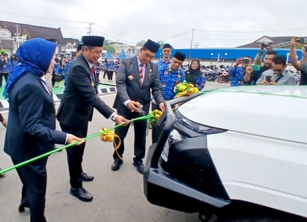 LUNCURKAN I-MOBIL-Bupati Barito Utara Bupati Barito Utara H Shalahuddin didampingi Wakil Bupati Felix Sonadie Y Tingan, Ketua DPRD Hj Mery Rukaini, luncurkan I-Mobil (Inovasi Mobil Pelayanan Perizinan) Mobile Service Dinas PMPTSP, Senin (1/12/2025) dihalaman kantor bupati.(foto: wartabarito)