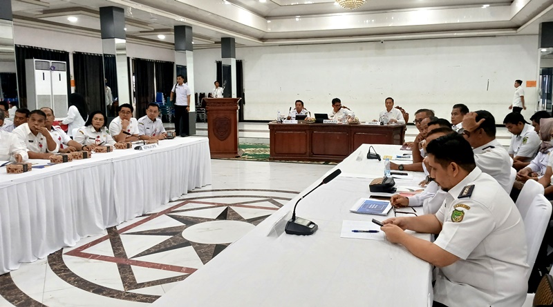 RAKOR CAMAT SE BARITO UTARA-Bupati H Shalahuddin didampingi wakil Bupati Felix SY Tingan dan Sekda Muhlis memimpin rapat koordinasi (Rakor) Camat se-Barito Utara di Balai Antang, Rabu (5/11/2025).(foto:wartabarito)