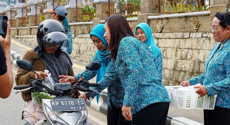 JUMAT BERKAH-Ketua TP PKK Barito Utara bersama Ketua GOW melaksanakan kegiatan sosial bertajuk Jumat Berkah Bersama TP PKK Barito Utara, Jumat (20/2/2026), di depan Sekretariat TP PKK Kabupaten Barito Utara, Jalan A. Yani, Muara Teweh, Jumat (20/2/2026).(WB:Dok Diskominfosandi)