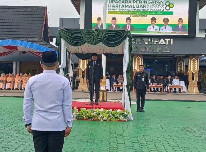 WARTABARITO.ID, Muara Teweh – Dalam peringatan Hari Amal Bhakti (HAB) ke-80 Kementerian Agama tingkat Kabupaten Barito Utara, Menteri Agama RI, Nasaruddin Umar, menekankan pentingnya sinergi produktif antarumat beragama dan transformasi layanan digital sebagai pilar mewujudkan Indonesia yang damai dan maju. Pesan tersebut disampaikan secara tertulis dan dibacakan oleh Wakil Bupati Barito Utara, Felix Sonadie Y Tingan, di halaman Kantor Bupati setempat, Sabtu (3/1/2026).
